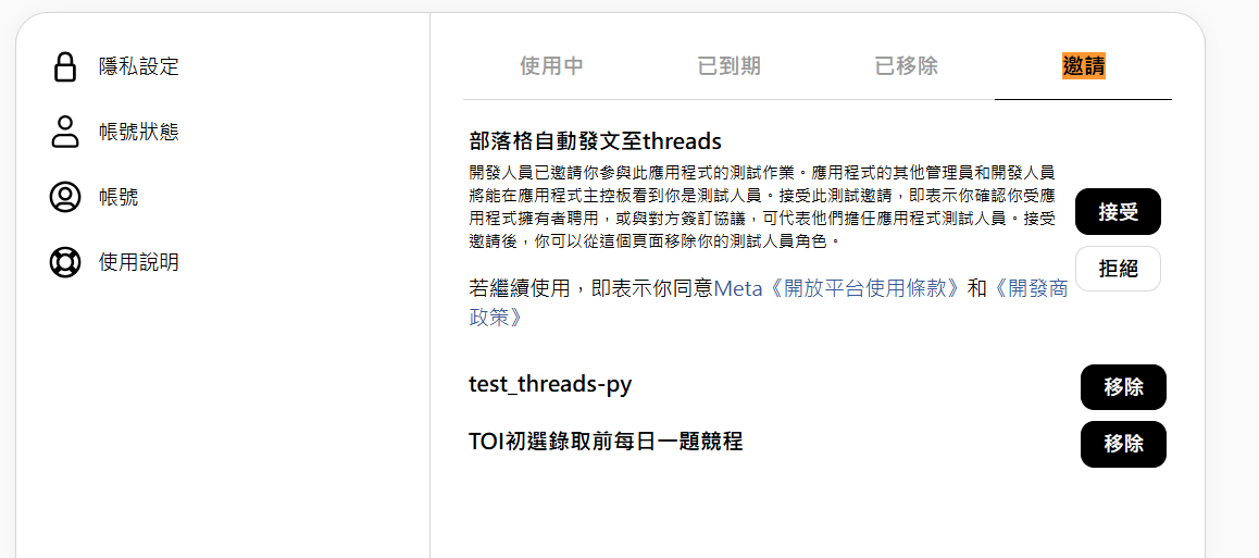 選存取 Threads API 繼續