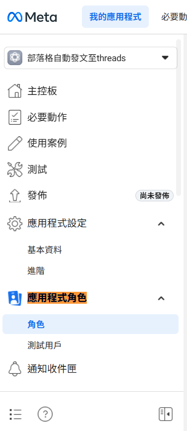 <你的client_secret>則要在剛剛的面板點應用程式 基本資料 Threads 應用程式密鑰